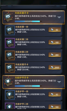 超级武器包括了属性提升类,免疫类还有伪装类。属性提升类超级武器有攻击力提升,防御力提升,负重提升,爆破值提升和行军速度提升,属于可以常备的超级武器。当然并不是要求一直保持,只是出现大型战役,攻城战等活动的时候,开启超级武器提升自己战斗力是对其他盟友的负责。