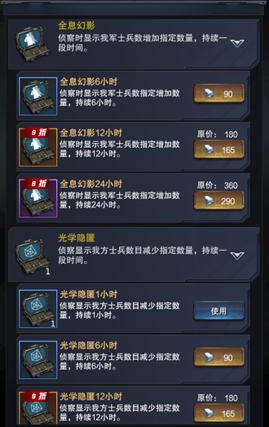 伪装类超级武器可以随意修改自己基地和要塞的兵力显示,敌人使用侦查计谋时完全得不到准确信息,达到欺诈效果。此类超级武器需要依照战场局势选择开启,同时修改的兵力也是需要自己考虑,怎样才能让敌人信以为真,是很有战略意义的一个内容。