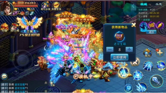 怪物攻城时,仙友需要保护活动NPC不被击杀并清理怪物,杀怪会掉落宝箱,一波怪杀完后地面会出现大量宝箱供仙友采集。