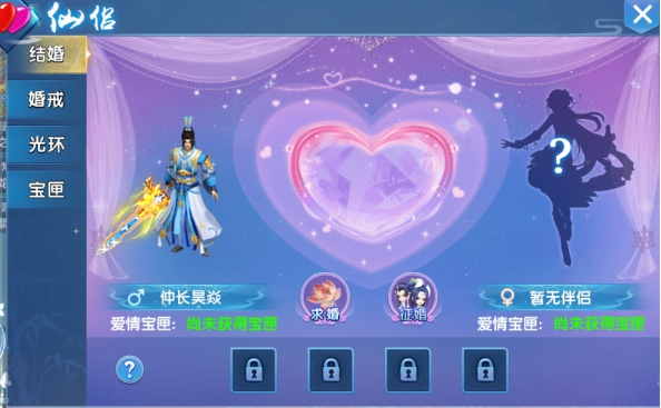 除了常规的玩法还有爱情宝匣玩法,结婚了之后可以为配偶购买爱情宝匣,爱情宝匣的有效期是30天,购买后当天就可以领取一次奖励,之后每天都可以领取一次,即时离婚了,也还可以继续领取奖励直至宝匣到期为止哦~