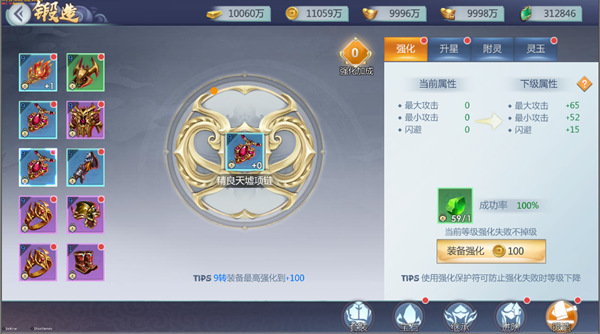 锻造部分除了强化,还有升星、附灵、灵玉。多种玩法给予装备成长属性,让玩家在追求战力的同时,拥有更多的选择。