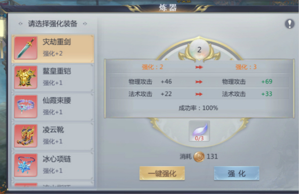 (PS:强化还会有一定的失败率,强化等级越高失败率越高,但每次失败都会增加下一次强化的成功率哦)