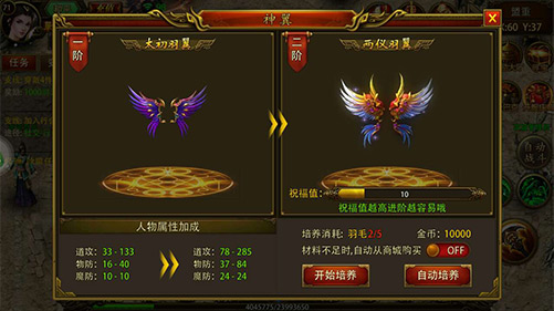 神翼每次提升阶段都可以提升觉得超高属性!并且每次提升阶段都可以解锁一个新的翅膀外观。