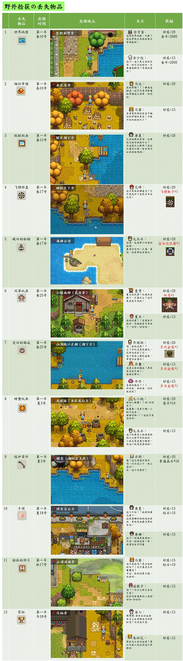 以下这些物品会随着游戏时间进行慢慢出现,不会有任务,直接归还给相关的NPC即可!