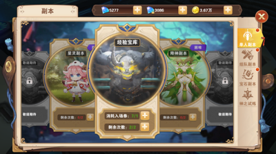 打开秘境选择经验宝库,注意每天副本都有限制次数(如果是贵族则可以消耗钻石购买次数),经验副本也需要消耗入场券的哦!