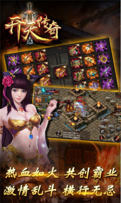 在开天传奇手机游戏里面,除了基本角色养成之外,不管是副本boss还是关卡、任务等,都非常好玩,游戏还拥有转职玩法,你也可以爆神装,装备回收换钱,比较耐玩,值得下载!