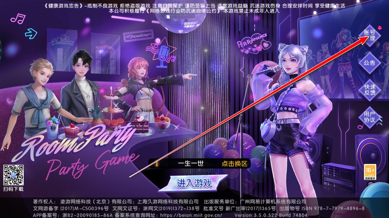登录账号后点击右上角的账号管理。