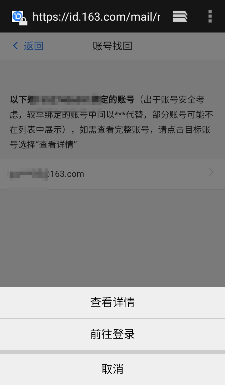 就会出现手机号绑定的邮箱了。点击查看详情。
