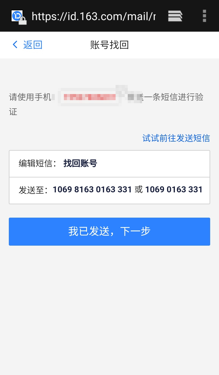 这里我们以邮箱为例子。进入后发送短信。