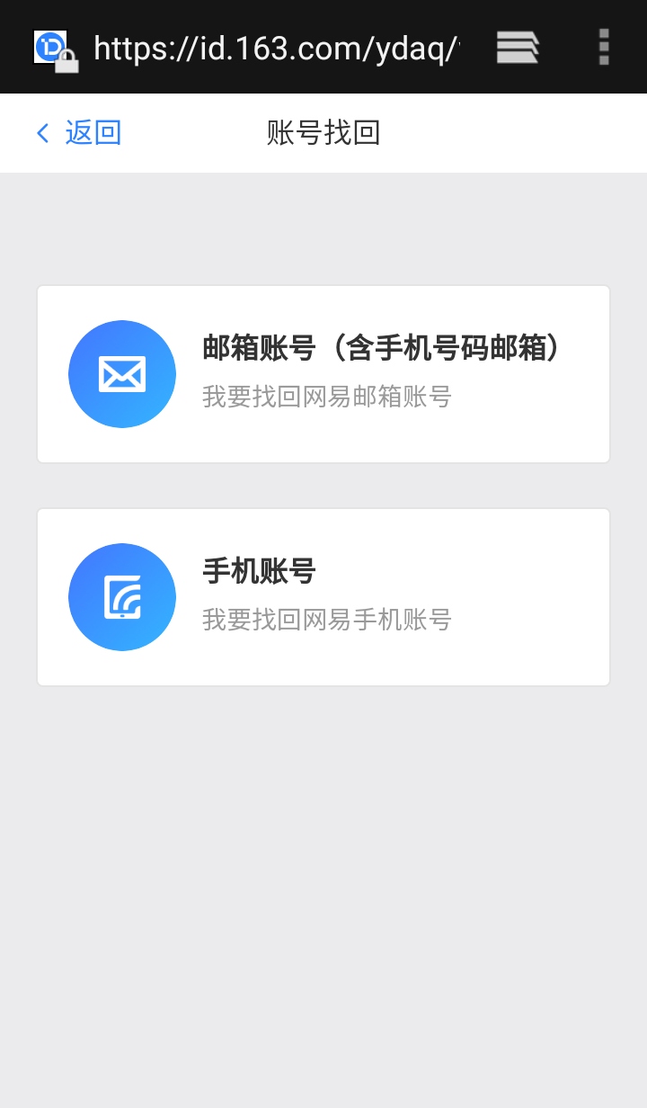选择你要找回的账号是手机号还是邮箱。