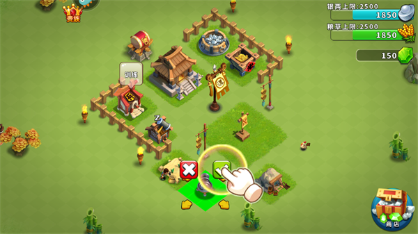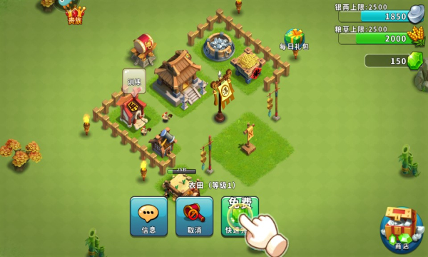 2、建设第一步:兵马未动,粮草先行,我们首先要有自己的农田和银矿!点击商店-资源-选择农田/银矿。