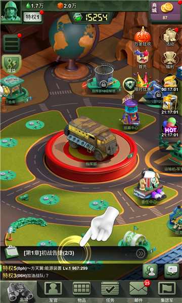 3、玩法丰富,多种策略战争全面开启,闲暇时间亦有通关副本可收集材料经验,帮助提升兵团战斗力;