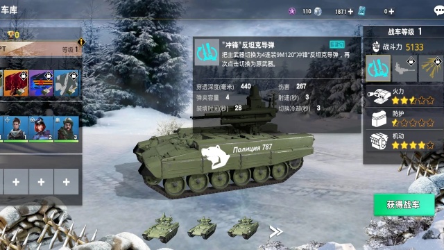 玩家在《装甲前线》的世界中,可以获取并升级改造包括主战坦克、步兵战车、突击炮、火箭车等各具特色的陆空战载具与其他玩家进行对战。