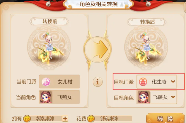 如果你符合需求的话可以直接进入转换页面,选择想要转换的门派。