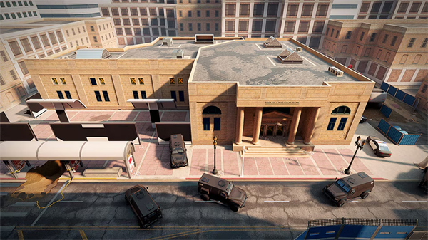 这家守备森严的银行位居人口密集都市中心,可不是轻易就能渗透的。由于这栋建筑物包含防守方轻易就能强化守备的多间中小型厅室,攻击方将无法轻易在这里找到任务目标。