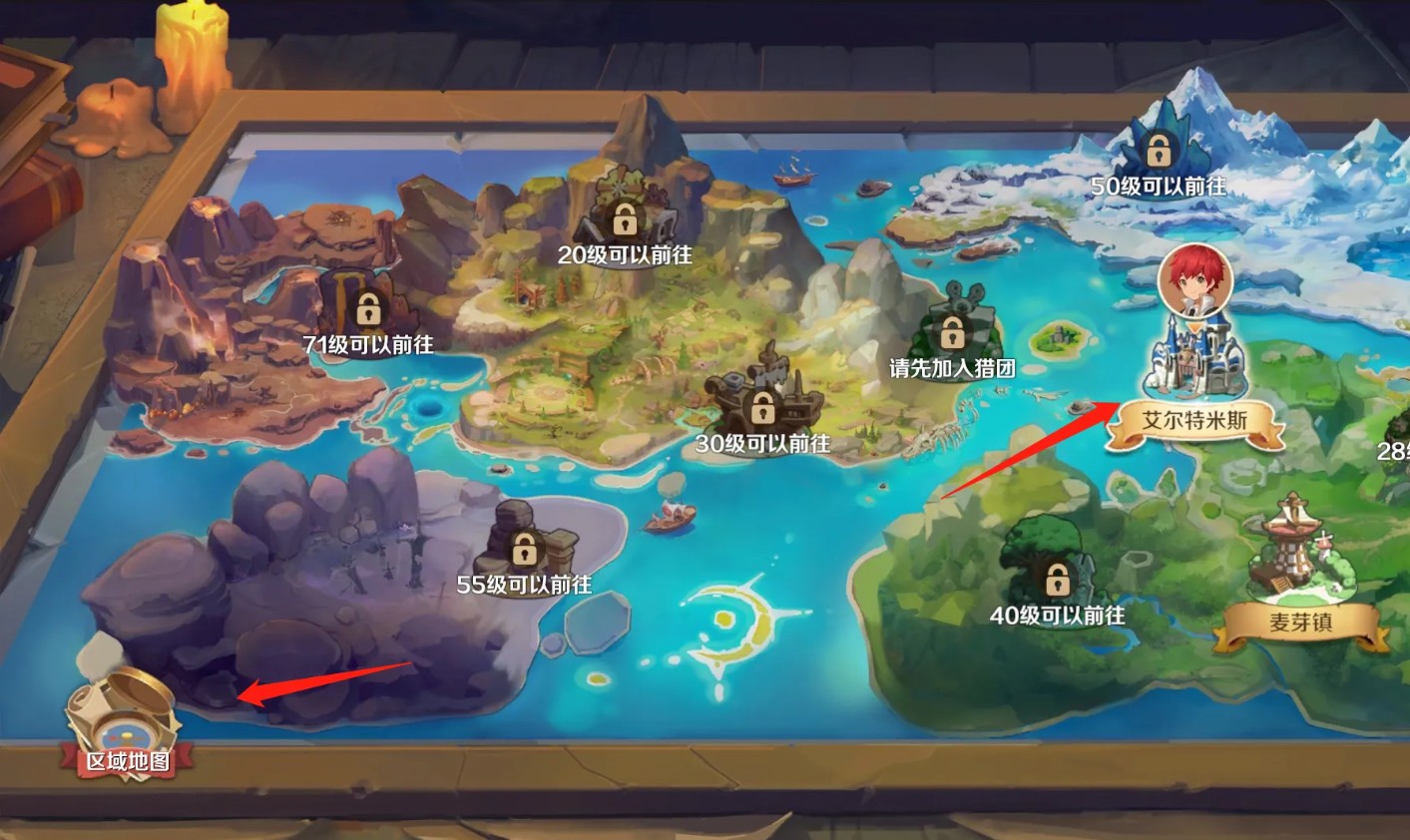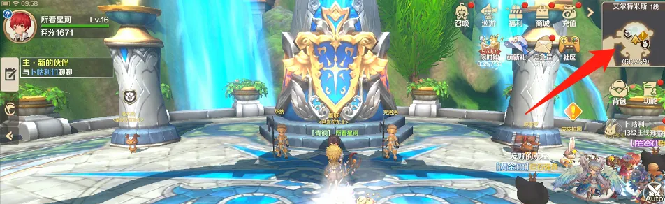 1.打开游戏,进入游戏主界面,点击右上角艾尔特米斯地图。