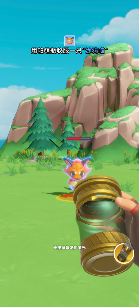 3、接着玩家需使用捕捉瓶来攻击捕捉帕萌;