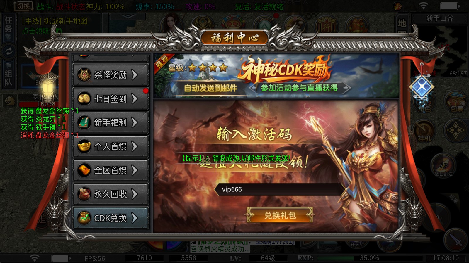 兑换方式:选择上方福利中心,然后点击CDK兑换,输入兑换码即可。