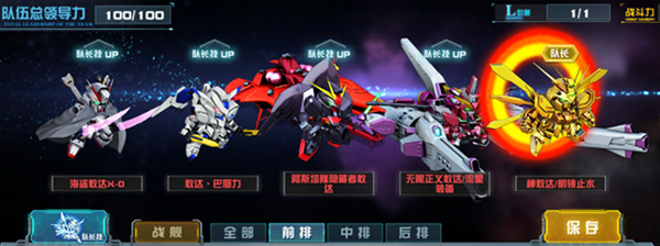 搭配思路:一种较为新颖的机体阵容搭配方式,选择将神敢达/明镜止水放入多模队。