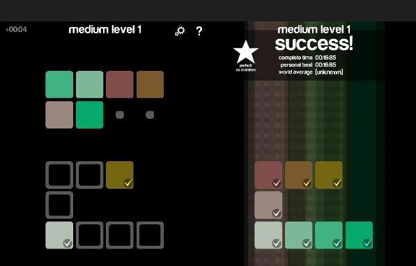 游戏界面中分为上下两个区域,上部为打乱的色块,拉动色块到下部进行渐变的排序既能过关。