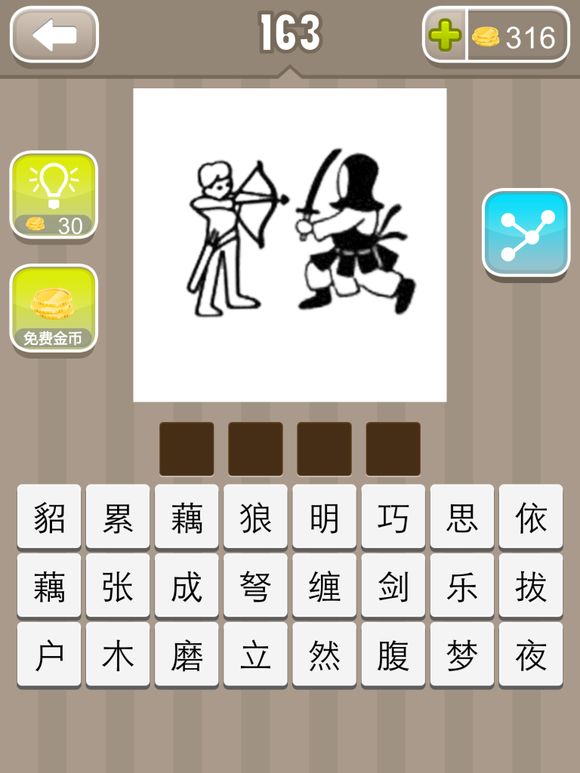 看图猜成语持速火爆中,作国粹游戏,其最大的特点就是加入了图文并茂老少皆宜的看图猜成语模式,而且图片的趣味性也非常之高。当然其中也是不乏一些较有难度的成语,来挑战你的智慧吧。一人拿着弓箭一人拿着刀两个人对持是什么成语?