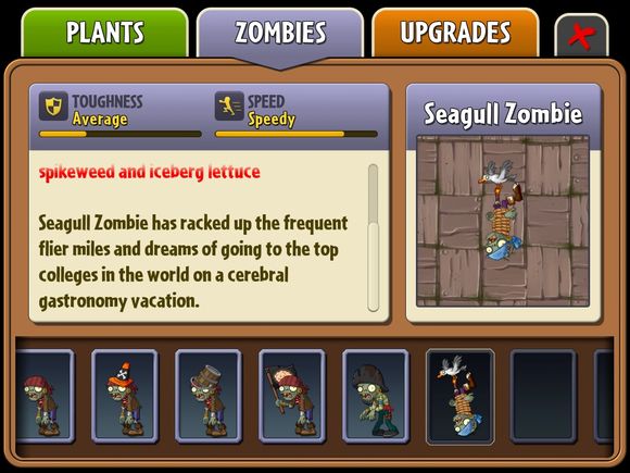 特殊:正如上述,它可以飞跃较矮的植物,例如冰生菜和地刺。。。海鸥僵尸的已经完成了他的常客飞行旅程,并梦想去世界上最顶尖的大学关于大脑烹饪职业专业的。(去蓝翔吧!)