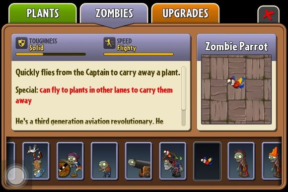 鹦鹉僵尸通常和海盗王僵尸一同出现,虽然很恶心的功能,但是好在防御力很差。