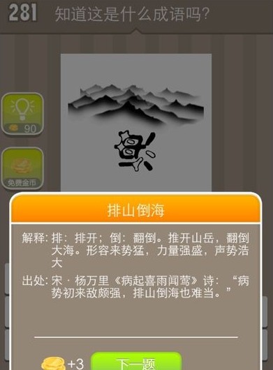 疯狂猜成语有这样一张图片关卡,图片为一个倒着的海字,而在海字的上方为山,答案为四个字成语,玩家你知道答案么?