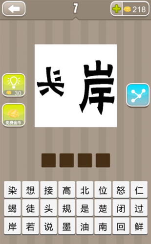 疯狂猜成语新版有这样一张图片关卡,图片为一个倒着头字和一个岸字,具体图片如下图: