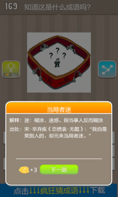 最新更新的疯狂猜成语中如下图图中有一红色的四方围墙上面写xx局中间有个人三个问号是指什么成语呢?和小编一起来看看吧。