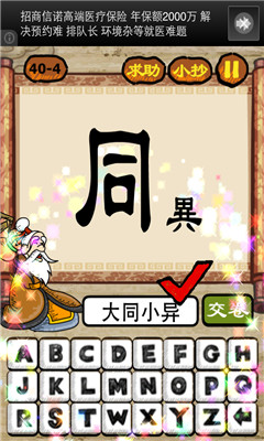 疯狂猜成语有这样一道题。本题不是很难只是有部分玩家不认识異字,它读yi,如果写成异字大家应该都知道答案了。一起来看下吧如图。