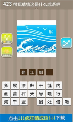 疯狂猜成语最新版本加入了这样一张图片关卡,十分有趣。该图为下图:倒着海字下面是汹涌的浪花是什么,猜猜这是什么成语吧?