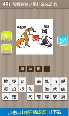 如图:黄鼠狼和臭鼬共同拿着一个囍字是什么成语呢?它是疯狂猜成语最新更新的其中一道关卡,大家一起来看看关卡图是虾米意思咧?