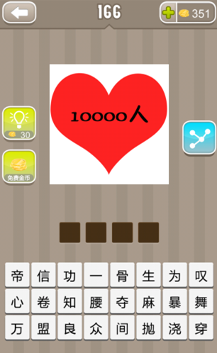 疯狂猜成语有多张关于红心的图片关卡,而图片表示不同成语也多样,下面为你解析疯狂猜成语一颗红心中有10000人是什么成语答案!