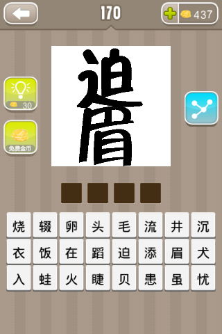 其实啊,这道关卡的答案就是:迫在眉睫,(迫字在眉字的上方,压着眉,大家都理解了吗?)