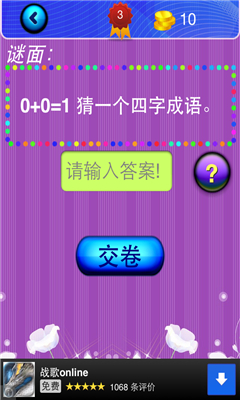 猜成语中有这样一个谜面:0+0=1猜一个四字成语是什么呢?成语图解带给大家。一起和小编来看看吧。