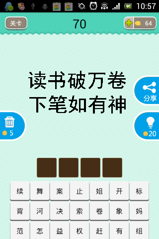这是疯狂看图猜成语里小编遇到的一个关卡,一句很有名的诗词,读书破万卷,下笔如有神,打一四字成语,它的正确答案会是什么呢?