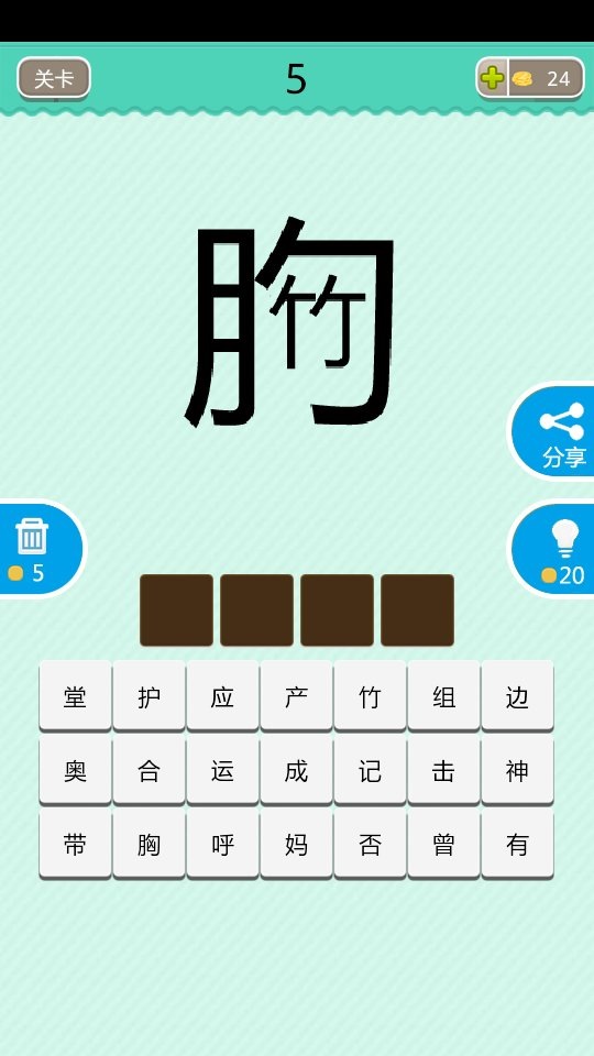 疯狂看图猜成语是看图猜成语和疯狂猜成语的结合版,有这样一幅谜面一个胸字里面有个竹字是指什么成语呢?不会的玩家和小编一起来看看答案吧!