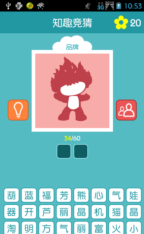 知趣竞猜里的一个品牌关卡,不知道有米有亲觉得很熟悉呢?粉色背景上,一个头发似火焰状的小人,什么呢?