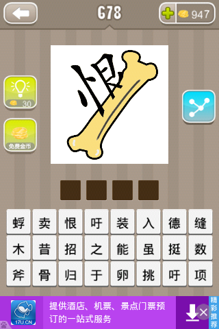 疯狂猜成语的这道新关卡内容如下图,一个黄色的骨头上有一个恨字,但是恨字只有一半,另外一半已经埋入了骨头里,是什么成语呢?