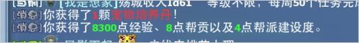 大量经验、帮贡、有一定几率获得宠物培养丹、五倍经验丹等物品奖励。