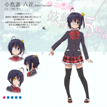 动漫作品《中二病也要谈恋爱!》中女主角。高中一年级学生,现役中二病患者。勇太的同班同学。右眼带着眼罩,遮住戴着隐形眼镜金色虹膜变色片的右眼。皮肤纯白、个子娇小的短发少女