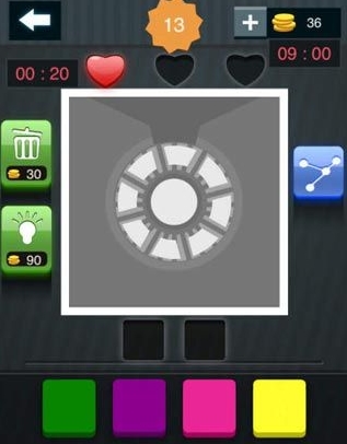 如下图,是钢铁侠的经典配色,选择红色和蓝色即可过关!