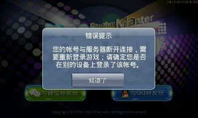 今天很多玩家在进入节奏大师游戏时候发现有报错提示“你的帐号与服务器断开连接,需要重新登录游戏,请确定是否在别的设备是登录了该帐号。”