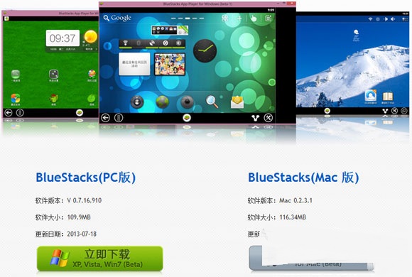 2、 BlueStacks支持Window和苹果Mac系统,选择自己需要的版本即可。