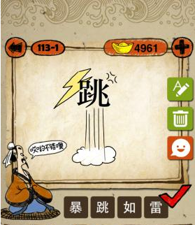 成语玩命猜新版本加入了这样一张图片关卡,图片为一个向上跳的雷字。而在雷字的旁边有闪电。玩家你能够猜出正确答案么?