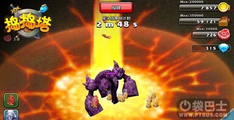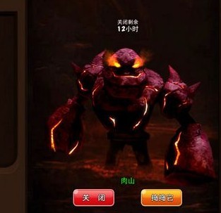建议打法,开始放石巨人打肉山,先骗出技能(技能在10秒时会释放、技能CD是1分钟),然后再放英雄和小兵快速集火。用高防御英雄、Dk、剑圣等配小Y。或者都用DPS英雄,笔者是用一个蓝色娜姐和熊猫,分次抢,4次抢光肉。