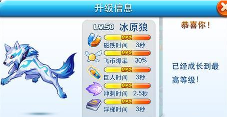 冰原狼的第二个好处是体积大,骑冰原狼可以不用起跳三排金币全吃,换任何一个人物坐骑都无法比拟的优势,如果你对你吃金币的技术很自信的话,那你就试试橙色之翼吧。