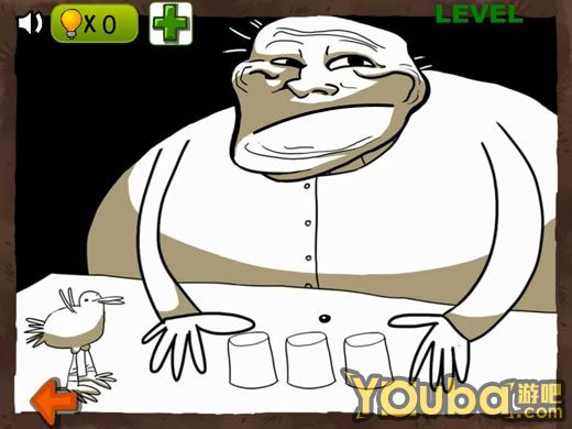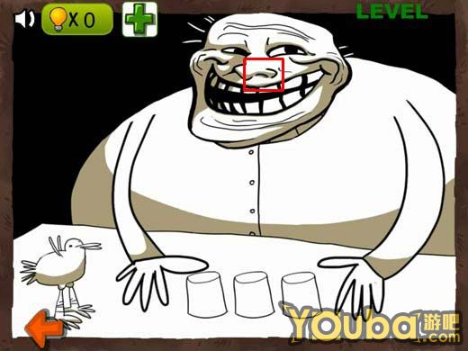 无论你怎么猜黑珠子在哪个杯子里,永远不会猜对的。游吧小编尝试多次都没有猜中,仔细想想肯定另有玄机。最后小编发现,只要点击他的鼻子就可以找到黑珠子了,如下图所示。