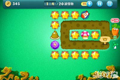 剩余的没难度了,有钱就放星星,第14波注意下,打怪的途中有很多钱,在上面放星星哦。不然可能会跑掉一个。